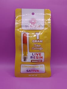 SUNRISE CANNABIS- Lemonhead OG- 1g Live Resin Wood-Tip Vape Cartridge- SATIVA